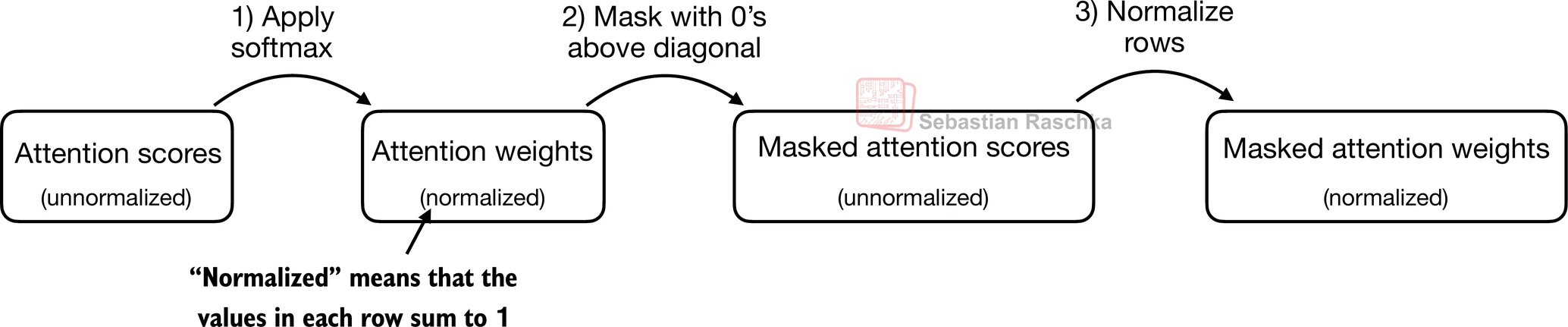 By convention, the unnormalized attention weights are referred to as “attention scores” () whereas the normalized attention scores, which sum to 1, are referred to as “attention weights” ().