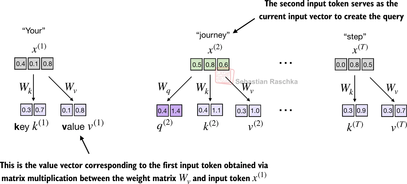 The subscript “21” in means that input sequence element 2 was used as a query against input sequence element 1.