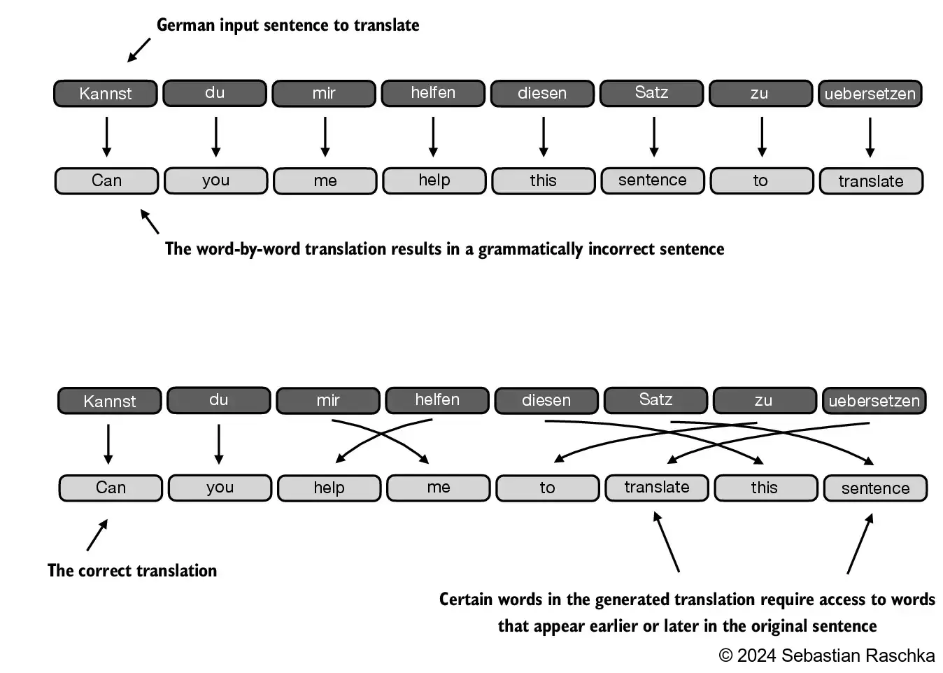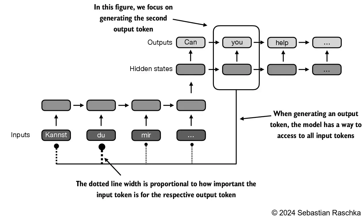 - It can’t directly access earlier hidden states from the encoder during the decoding phase. Consequently, it relies solely on the current hidden state, which encapsulates all relevant information. This can lead to a loss of context, especially in complex sentences where dependencies might span long distances.