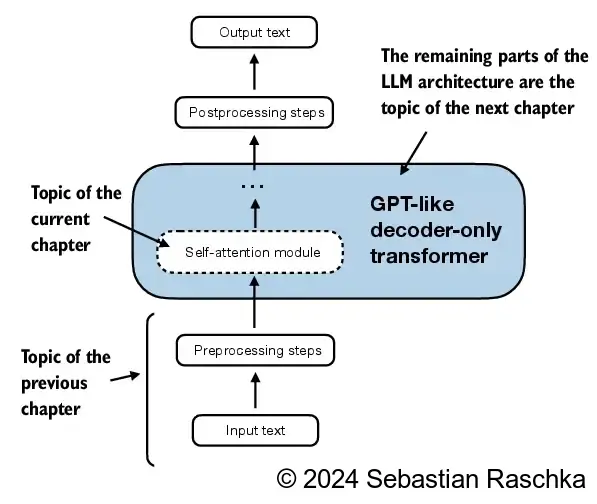 - The input is a text (for example, a sentence like “Your journey starts with one step”) that has already been converted into token embeddings.