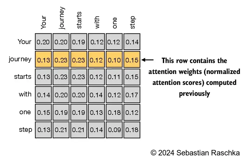 attn_weights = torch.softmax(attn_scores, dim=-1)